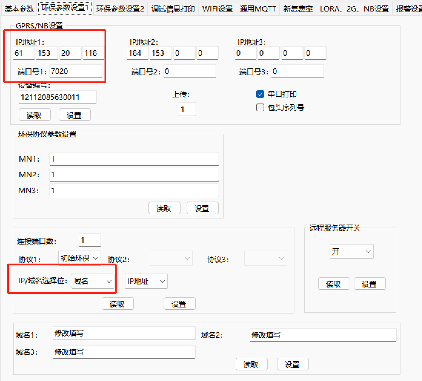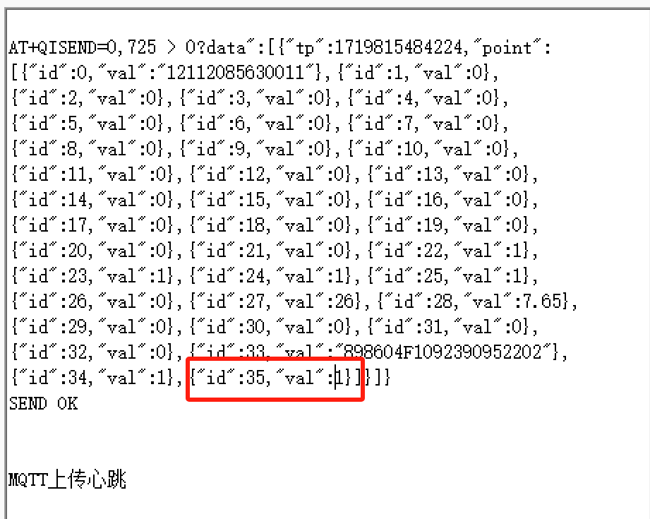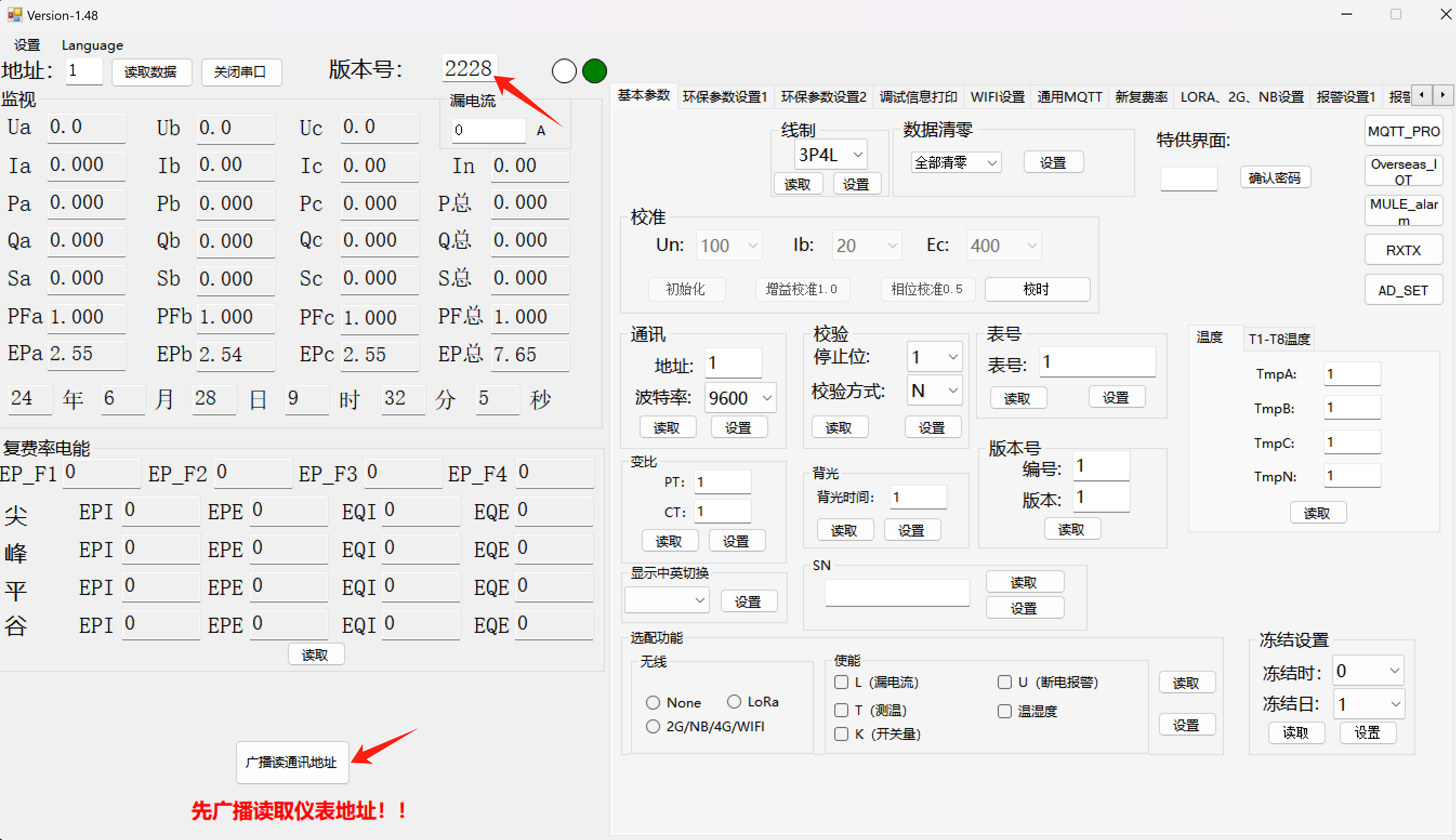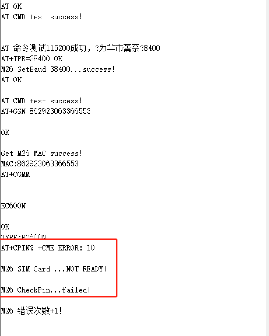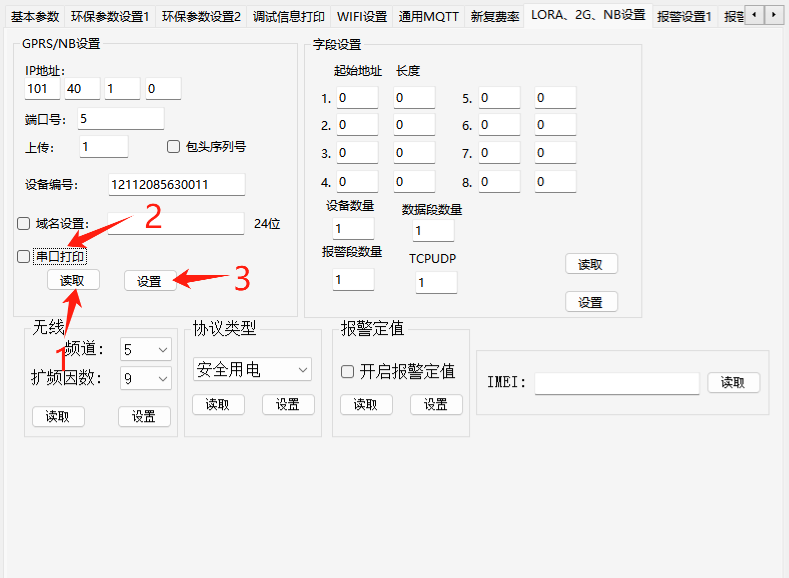 无线仪表不在线问题排查 目录 一、如何查看调试打印信息 1 二、无线仪表调试问题排查 2 1. 安全用电 2 3. MQTT 5 (1) 4G-MQTT 5 (2) WIFI-MQTT 13 # 一 如何查看调试打印信息 打开ADW300调试软件,如图一所示,先点击下方的广播读通讯地址,确认上方的版本号;2228对应4G-安全用电协议,2294对应4G-MQTT协议,2323对应WiFi-modbustcp协议,2457对应WiFi-MQTT协议;其他版本若不知道是什么协议,联系工程师确认。  图一 2228版本按照图三先读取,再勾选串口打印,最后点击设置,提示设置成功即可; 其余版本按照图二先读取,再勾选串口打印,最后点击设置,提示设置成功即可。  图二  图三 # 二 无线仪表调试问题排查 ## 1 安全用电 (1)如果打印信息出现图四所示的内容:“M26 SIM Card ...NOT READY”表示仪表未检测到物联网卡。请检查是否插入物联网卡,或者物联网卡是否激活。  图四 1. 如图五所示,提示“M26 SIM Card ...READY!”表示检测到卡,如果提示“GPRS附着失败”,可能是卡没流量了或者物联网卡被锁定了,也有可能是使用的物联网卡需要设置APN。  图五 1. 如图六所示,提示“M26 ConncetTcp...failed!”,表示服务器IP端口连接失败,请检查配置的IP端口是否正确,如配置无误再检查连接的服务器状态是否正常。  图六 1. 连接服务器成功之后,如图七所示,仪表会进行注册,对时,数据上报的操作,针对每一个步骤,服务器端都要一一进行回复,如果不回复,仪表会断开连接并重连,如果出现反复重连的现象请检查回复机制是否遗漏。  图七 ## 2 MQTT ### 2.1 4G-MQTT * + - 1. 如果打印信息出现图八所示的内容:“M26 SIM Card ...NOT READY”表示仪表未检测到物联网卡。请检查是否插入物联网卡,或者物联网卡是否激活。  图八 * + - 1. 如图九所示,提示“M26 SIM Card ...READY!”表示检测到卡,如果提示“GPRS附着失败”可能是卡没流量了或者物联网卡被锁定了,也有可能是使用的物联网卡需要设置APN  图九 * + - 1. 如图十所示,如果出现“地址1连接失败”,请检查图十一的IP端口等配置;配置无误仍连接失败,请检查是否需要使用转网卡或定向卡。  图十  图十一 * + - 1. 如图十二所示,如果提示地址1已连接到服务器,地址2连接失败,请检查图十三处的端口连接数是否为1,不为1请修改成1  图十二  图十三 * + - 1. 如图十四所示,如果出现“远程调试端口连接失败”,请确认是否使用专网卡或定向卡,如使用则需要将我司远程服务端口加入白名单: http : safe.acrelcloud.cn TCP: device.acrelcloud.cn  图十四 * + - 1. 如图十五所示,如果在登录MQTT服务器过程中,出现“closed”,请检查图十六处的MQTT相关参数是否设置正确。  图十五  图十六 * + - 1. 如图十七所示,连接成功之后,只能收到ID:0-35项数据,收不到ID:36-72项数据,请检查图十八处的MQTT参数设置中的QOS是否正确设置成1,如果不是1请修改。  图十七  图十八 ### 2.2 WIFI-MQTT * + - 1. 如图十九所示,如果出现“连接WIFI 失败”,“WIFI set...failed”等字样,表示WIFI连接失败, AT+CWJAP="mimi1","876543210" (此处为WIFI的账号密码),连接失败请检查此处是否正确 +CWJAP:3(此处的数字表示错误原因) 1:连接超时 2:密码错误 3:无法找到目标 AP 4:连接失败 ,如果检查账号密码没问题,请检查WIFI是不是2.4GHZ的,WiFi仪表目前只支持2.4ghz。  图十九 * + - 1. 如图二十所示,WIFI连接成功后,出现“WIFI ConncetTcp...failed”,请检查IP端口等配置;配置无误仍连不上,检查是否有防火墙。  图二十