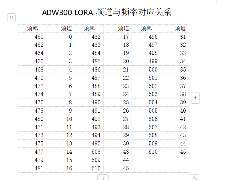 ADW300-LORA频道与频率对应关系