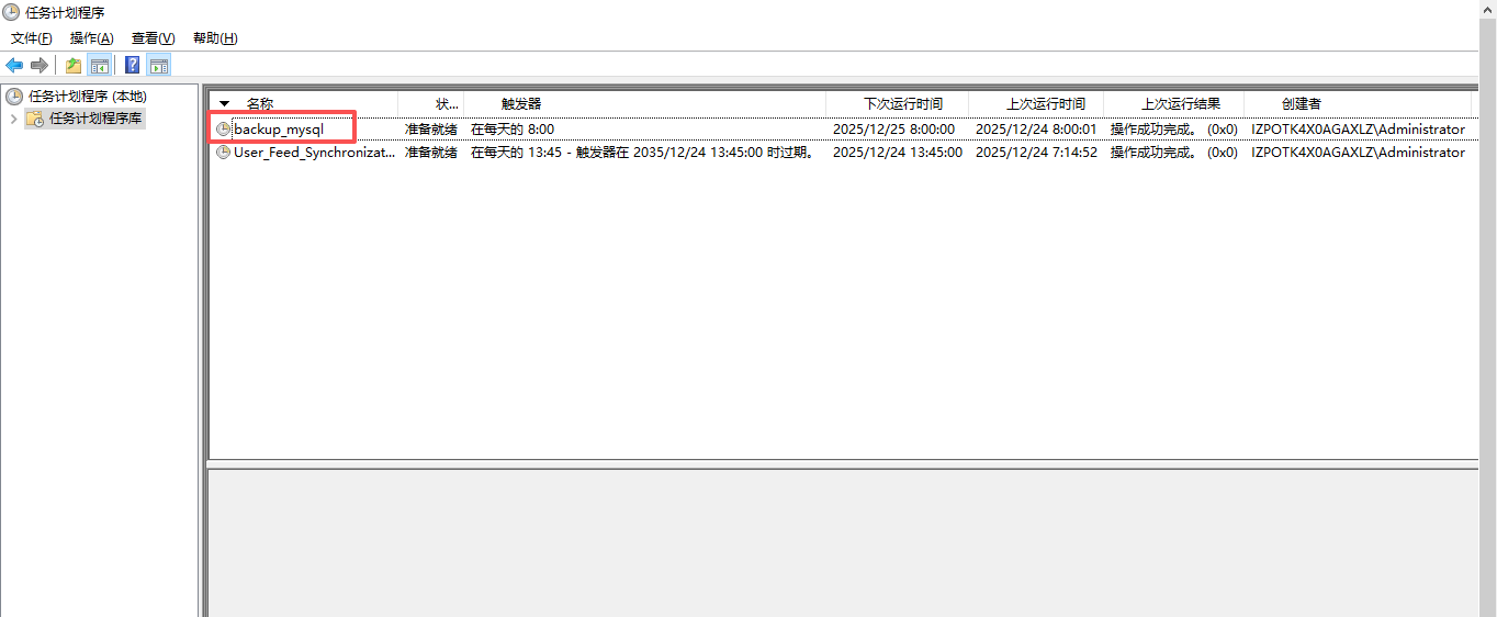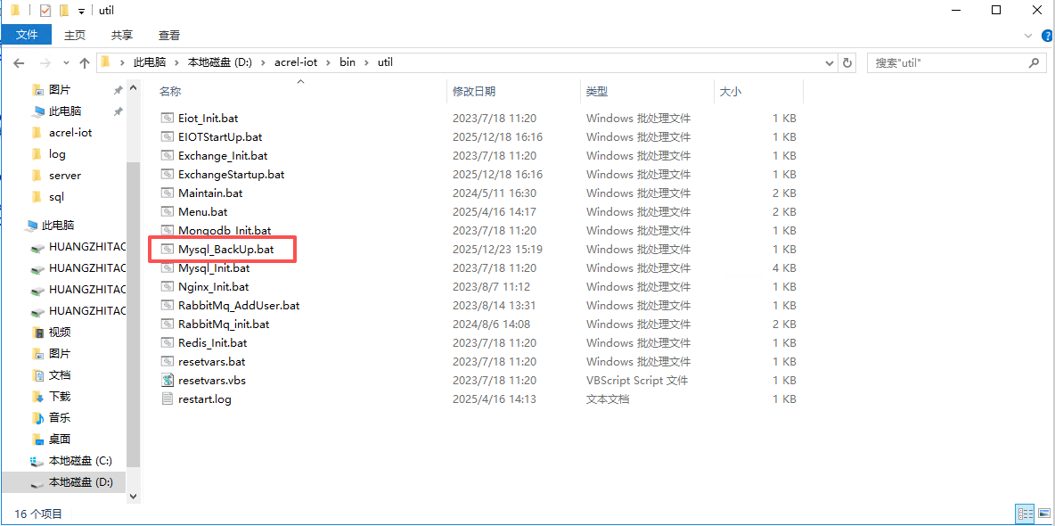 ## 简介 为了防止备份数据文件被黑客攻击程序扫出加密。做了如下调整: - 去掉了数据备份文件后缀 .sql - 去掉了备份相关的提示文字 - 备份目录调整,Linux 为 /bp , Windows 为 C:\bp ## 附件 [【附件】Mysql_BackUp.zip](/media/attachment/2025/12/Mysql_BackUp.zip) ## Windows 操作 1、将 Mysql_BackUp.bat 放到 D:\acrel-iot\bin\util 目录下  2、确认定时任务是否存在  如果存在,则不用操作,如果不存在则需要运行以下命令: ``` schtasks /create /tn backup_mysql /tr D:\acrel-iot\bin\util\Mysql_BackUp.bat /sc DAILY /st 08:00:00 ``` ## Linux 操作 1、将 mysql_backup.sh 放到部署包 acrel-iot-linux/bin 目录下  2、运行以下命令确认定时任务是否存在 ``` crontab -l ```  如果存在,则不用操作,如果不存在则需要运行以下命令: ``` chmod +x 目录/bin/mysql_backup.sh echo "0 0 * * * 目录/bin/mysql_backup.sh" | crontab - ```