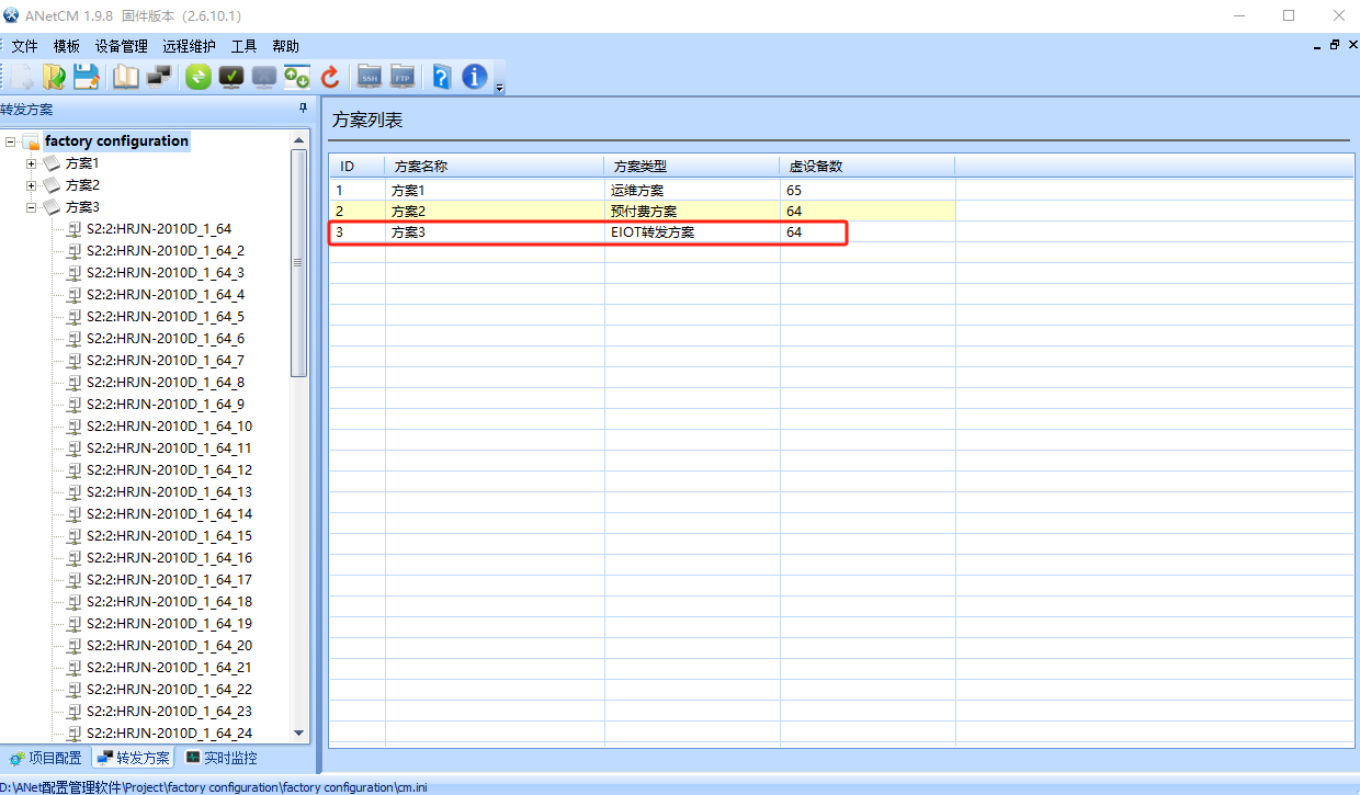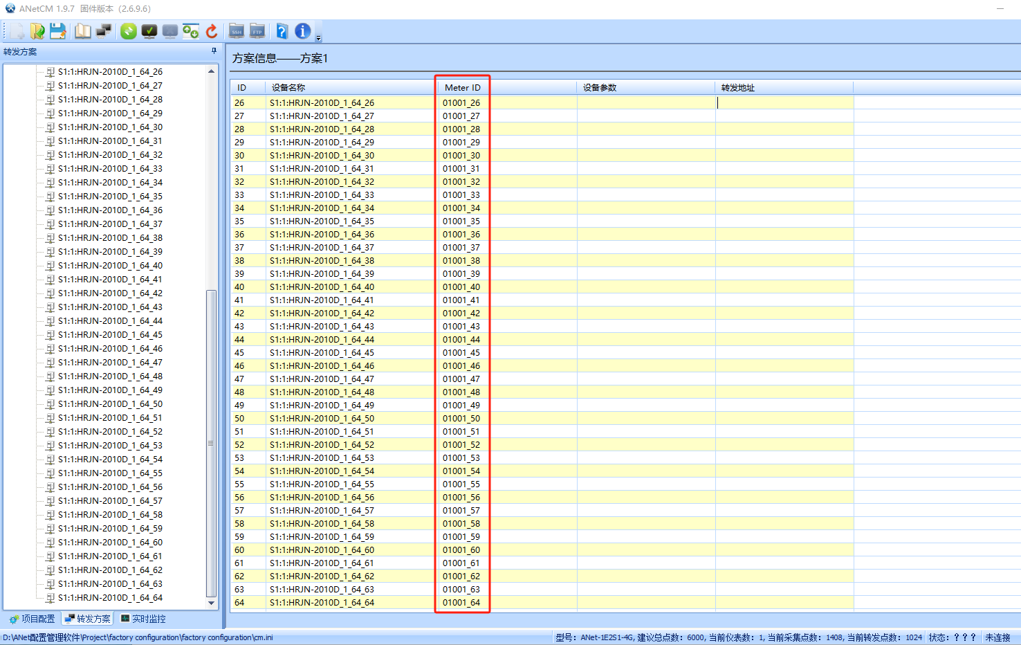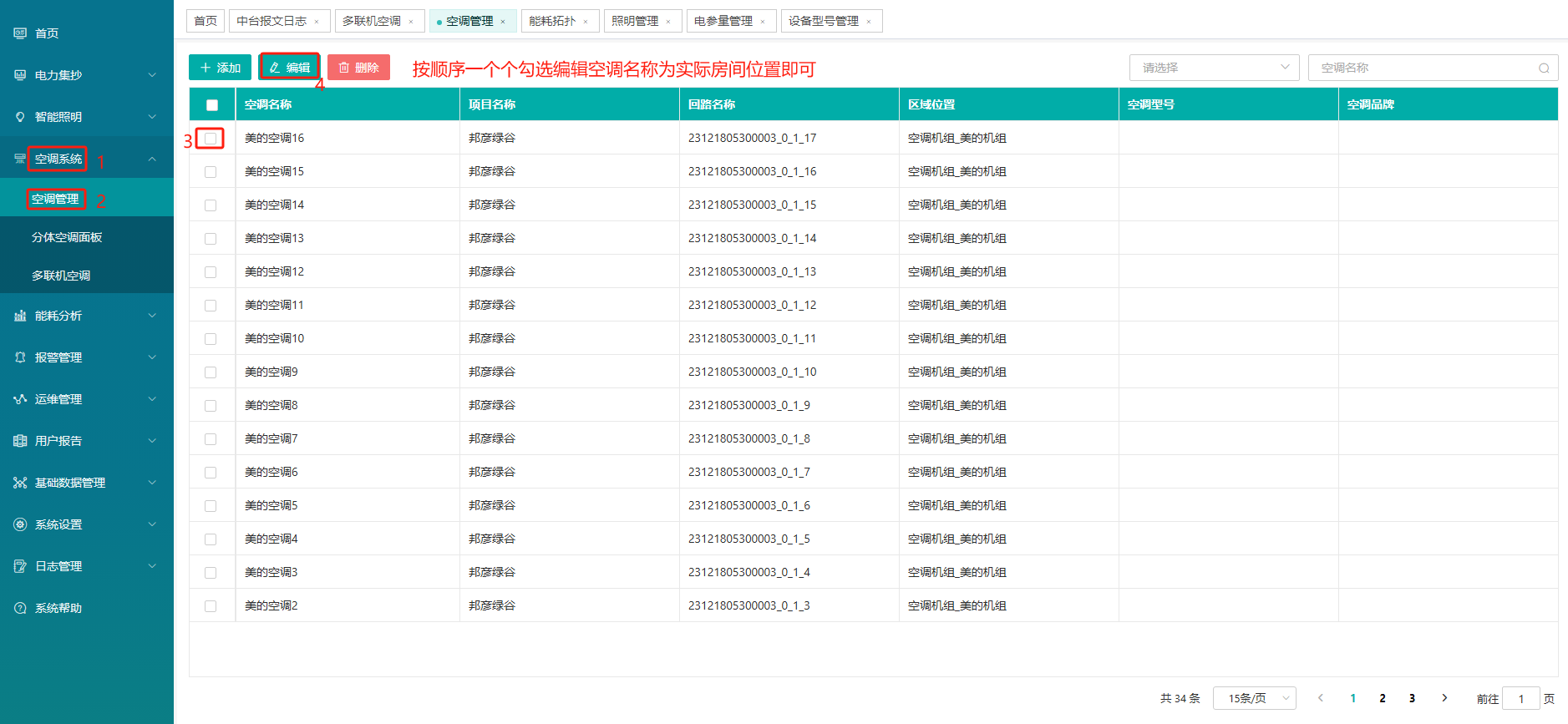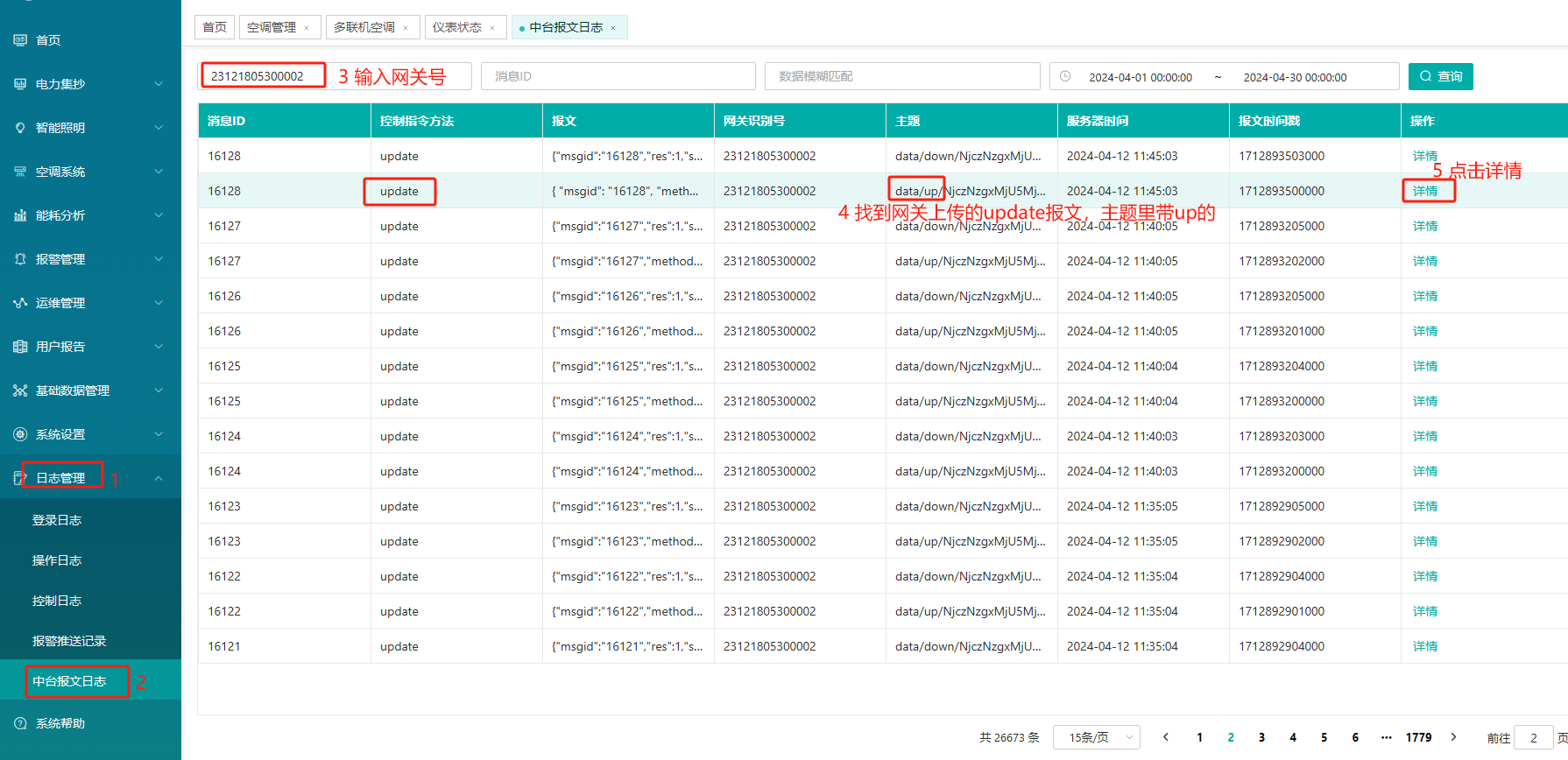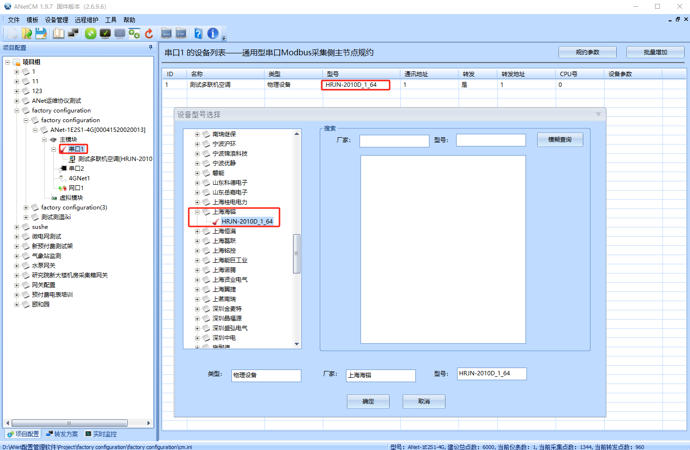 ### 1.方案介绍   海镕多联机空调控制器目前使用AWT200网关中台协议或ANet网关运维协议接入EIOT平台,一个海镕空调控制器只接一个室外机制冷系统,网关可以接多个海镕空调控制器。由海镕多联机空调控制器采集现场空调系统的数据,安科瑞网关根据抄表模板去采集并拆分各室内机回路的数据,每台室内机回路作为一个单独的空调子设备。   平台型号名称的**前缀**暂定为`HRJN-2020D`,与海镕分体空调面板`HRJN-2020C`作区分,根据现场室外机地址是1还是0确定型号名称**后缀**。 - `HRJN-2010D_0_64`对应室外机地址0,下面内机地址0~63,共64个,应该不常见 - `HRJN-2010D_1_64`对应室外机地址1(常用),下面内机地址0~63,共64个    海镕多联机空调控制器能够搜索到下面接的空调室内机 如空调控制器上`18-1-11`前面的`18`表示整个空调系统共有18台室内机,后面`1-11`表示室外机地址1下的地址11的室内机,虽然能够搜索到室内机地址,但是不能根据室内机地址确定到底是哪个房间的空调,需要现场通过开关机、设置参数对照平台上的数据变化,确认室内机地址和室内机的对应关系(操作示例见下文3.3)。 - 需要注意:多联机空调属于一个制冷系统,制冷模式和制热模式不能共存,已经有室内机开启制冷模式的情况下,其他的室内机开启制热模式是不生效的,其余的模式没有这种冲突,唯有制冷和制热不能共存。 平台下发开关设置、运行设置指令中台这边是通过透传方式下发到空调控制器。 #### 1.1 格力机组和美的机组调试过程(仅供参考可略过不看)   某项目现场有格力和美的两套机组,空调控制器最初使用的是海镕提供的V1.20(2022年)协议,协议规定一个室外机下最多有32个室内机,室内机地址范围是0 ~ 31。根据此协议为室外机地址1的场景编写了`HRJN-2010D`型号模板,下面带内机地址0 ~ 31共32回路。   格力机组顺利调通后接下来调试美的机组时出现问题,现场美的机组各室内机的地址不在0 ~ 31范围内,导致现有的协议用不了,并且无法通过美的的空调面板去改写室内机地址。   后来和海镕技术沟通,对方提供了一版新的V2.1协议,单个室外机地址下支持64台室内机,室内机地址范围:0 ~ 63,现场空调控制器需要升级固件。   现场美的机组控制器如下图所示,室外机地址是1,下面共16台室内机,其中这一个室内机地址是58,这种情况须使用新的型号模板`HRJN-2010D_1_64`   如果室外机地址是0的话,须使用`HRJN-2010D_0_64`模板(这种情况应该很少,海镕技术说过一般室外机地址默认是1),所以常用的应该只有`HRJN-2010D_1_64`这个型号模板。   调试前先确认海镕发的货用的是什么程序版本,如果是老版32路协议的版本,需要升级最新的64路协议的程序,升级步骤见下文2.1。   从空调控制器界面上看就可以很清楚的区分新版程序还是老版程序,如下图所示。 老版,界面颜色略显单调。  新版,内机地址和状态用绿色显示。  ### 2.海镕空调控制器使用说明 一个空调控制器下面只接一个制冷系统(室外机),室外机地址从0开始,空调控制器能够查看到制冷系统(室外机)下的空调室内机地址,但是不能和现场每一台室内机一一对应,调试完网关并在平台添加绑定各台室内机后需要现场的人配合,通过开关机、设置参数等操作去看平台上的数据变化,确定室内机回路地址和所在房间位置的对应关系 以旧版32回路程序为例,空调控制器上内机`18-1-11`前面的18表示共有18台室内机,后面1-11表示室内机地址,对应室外机地址1下的地址11的室内机,如下如所示  新版本界面有所变化,如下图所示,图中搜索到的内机地址是1-44,共16台室内机  #### 2.1 海镕空调控制器联网升级固件版本 海镕空调控制器联网后可以在线升级到最新程序版本  第一步,手机开热点,热点名称设为A,热点密码改为12345678  第二步,先拿掉A1B1线,设备重新断电上电,若设备未连上热点,重复断电上电操作,直到出现下图状态  第三步,在网络OK的情况下,按上下翻页,找到检查更新页面,长按SET确认更新下  第四步,下图V31版本正在下载中,这时候不要动设备也不要断电,等待设备更新直到版本显示V31即可,若升级失败,重复下第三步的操作  第五步,升级成功后界面如下图所示,搜索空调完成后可以按上下键统计内机地址  ### 3.调试说明 #### 3.1 AWT200网关方案调试说明(此方案没有锁定功能) ##### 3.1.1 注意事项 (1)由于AWT200目前的模板点位数上限是600个,多联机空调控制器的锁定功能(开关锁定、模式锁定、温度上下限锁定、风速锁定)此方案暂不支持,因为点位不够用,项目上若需要锁定功能,须使用ANet网关。 (2)使用AWT200网关接入,一个室内机在EIOT平台的仪表地址addr是由`串口号_空调控制器Modbus地址_回路号`组成,如: `0_5_1`,表示空调控制器接在AWT200网关第一个串口下,空调控制器的modbus地址是5,这台室内机的回路号(对应型号模板里的组号)是1。由于室内机地址从0开始递增,而AWT200网关模板里的组号是从1开始,所以平台上看到的室内机的回路号需要减去1才对应室内机实际地址,`0_5_1`这台室内机实际地址是0。 (3)由于新版的HRJN-2010D_1_64型号模板采集点位数达到了512个,而AWT200网关旧版本模板点位数上限达不到这个数量,需要升级网关固件版本从而支持模板上限达到600个点位数,目前项目现场测通的固件版本是`2579_1016_AWT200_V1.8.23.C_20240329_090939.bin` 后续使用的AWT200网关固件版本不能低于